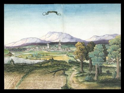 Für den verfallenen Zustand der Stadtmauer im 16. Jh., den die Ansicht zeigt, gibt es zeitgenössische Belege.